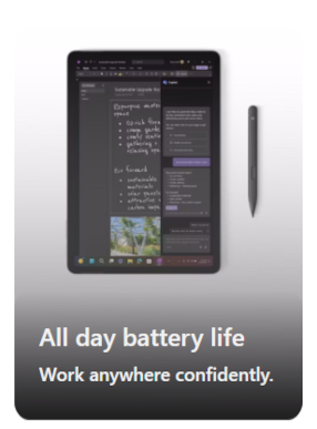 Light and flexible, this Copilot+ PC2 is powered by a Snapdragon® X Plus processor and provides all-day battery life and the flexibility to use with touch, voice, pen,3 and Surface Pro 12-inch Keyboard with bold keyset.3